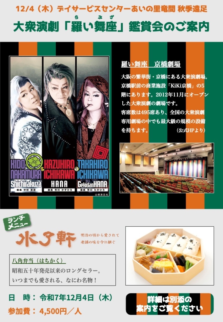新喜劇は見送りになりましたが、今年の秋季遠足は京橋の大衆演劇にいきます!!
