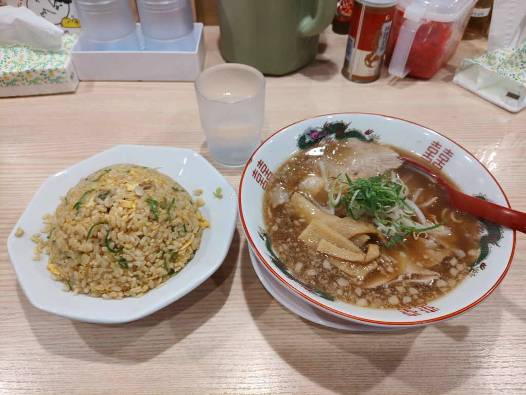 ラーメンは見た目よりアッサリ。シンプルに美味しいラーメンです。チャーハンはラーメンタレで味付けしているのかしっかり目の味付けで、個人的にかなり高評価。