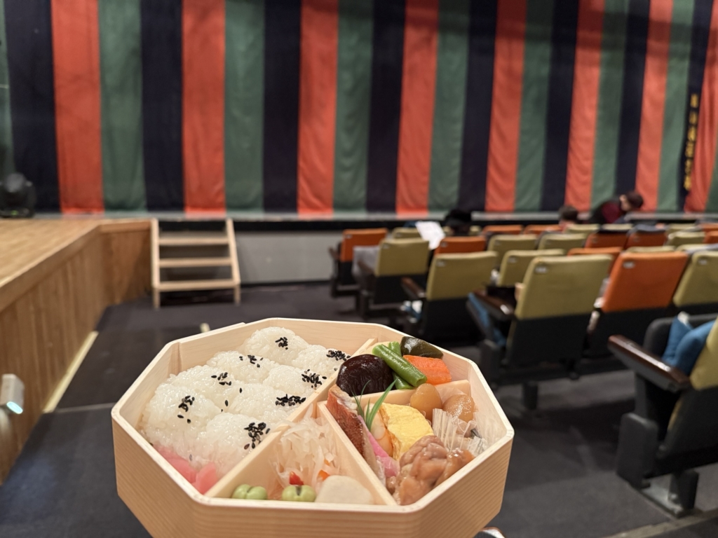 ということで、水了軒の八角弁当を配達いただき、おいしいご飯を食べながら観劇させていただきました。