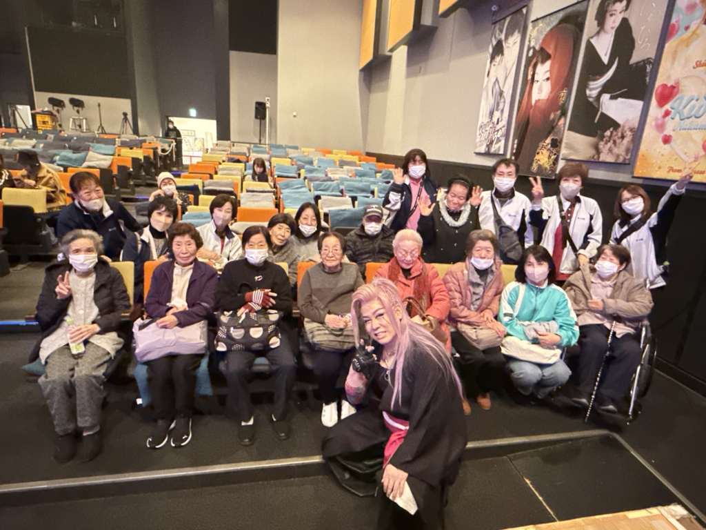 劇の後、座長さんをはじめとする劇団の方々がご挨拶に来てくださり、みんなで集合写真を撮らせていただきました!!