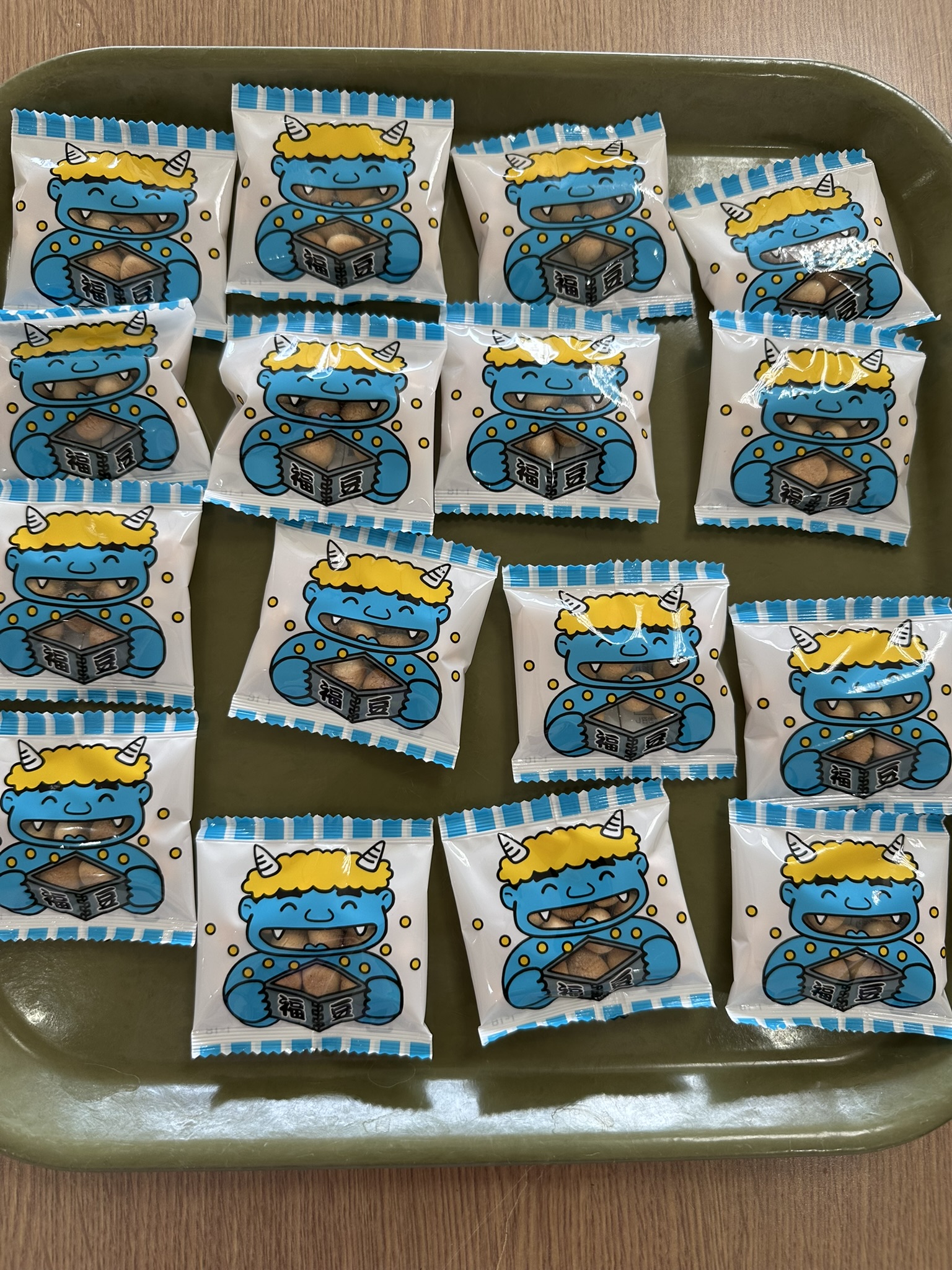 おやつは福豆に見立てたボーロ。