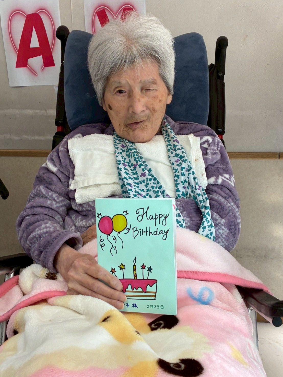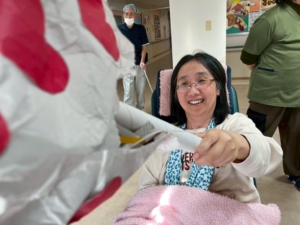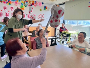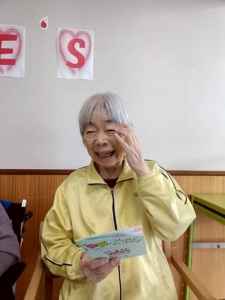 2月がお誕生月の入所者様に、スタッフがオカリナでお祝いしました。