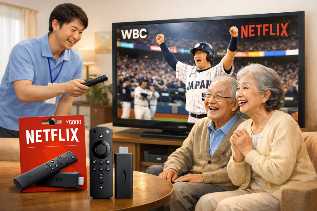 そこで、「Netflixを契約してでも観たい!」というご要望を受け、私H、Fire TV StickやNetflixプリペイドカードの購入代行から、アカウント作成、初期設定、操作方法のレクチャーまで、しっかりサポートさせていただきました!